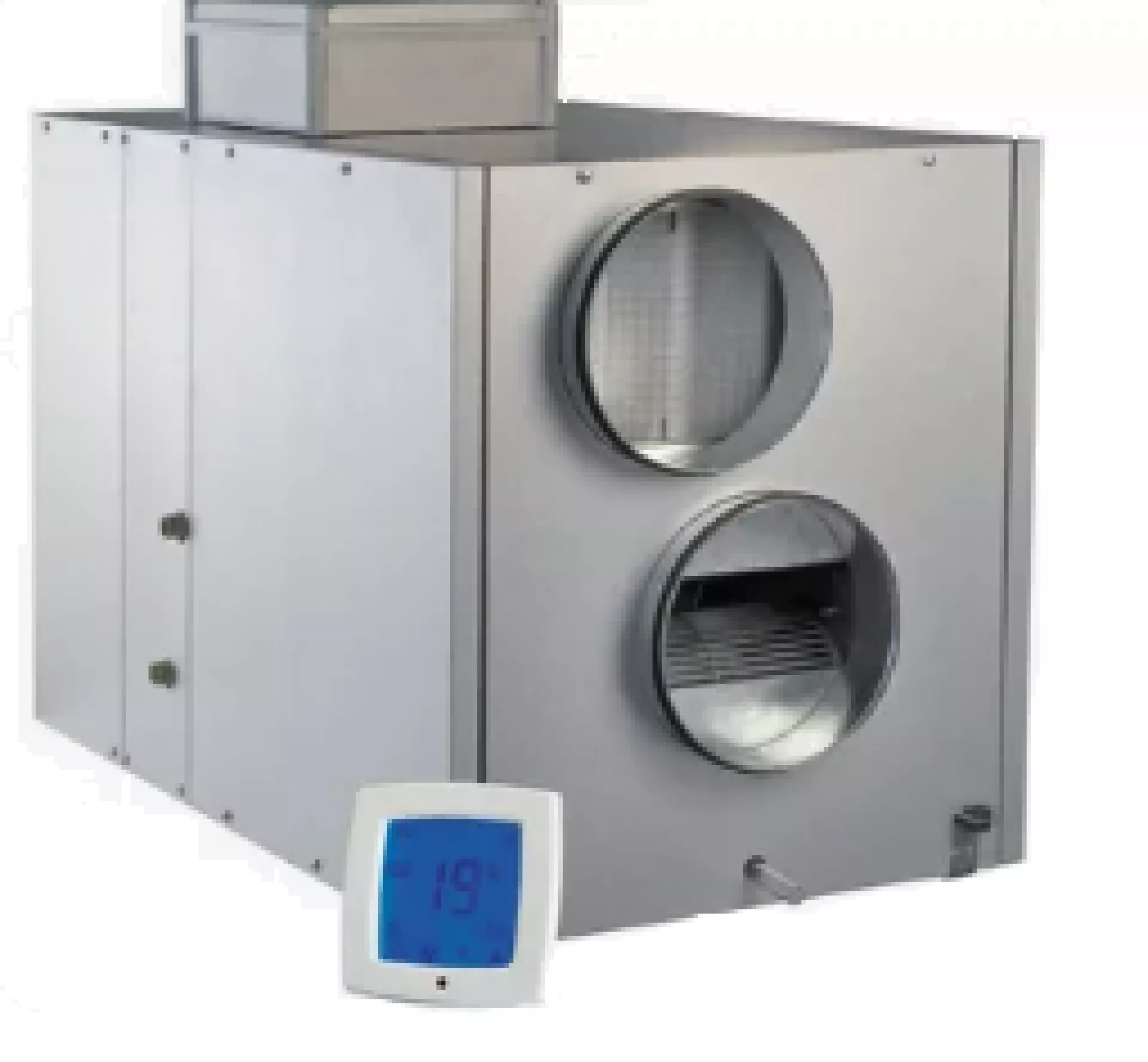 Приточно-вытяжное оборудование для частных домов чаще всего подвесного исполнения. Приточная установка занимает по высоте от 550 до 600 мм при использовании рекуператора и 450-500 мм в системах без рекуперации. Дина оборудования от 1.6 до 2.2 метра. А ширина – около 1 метра. Дополнительно от 600 до 1000 мм занимает шумоглушитель для снижения уровня шума от вентиляторов.