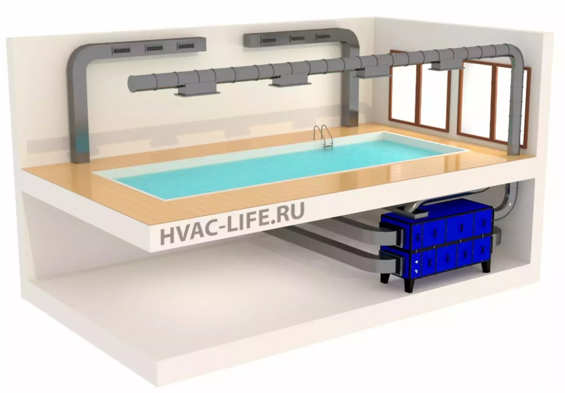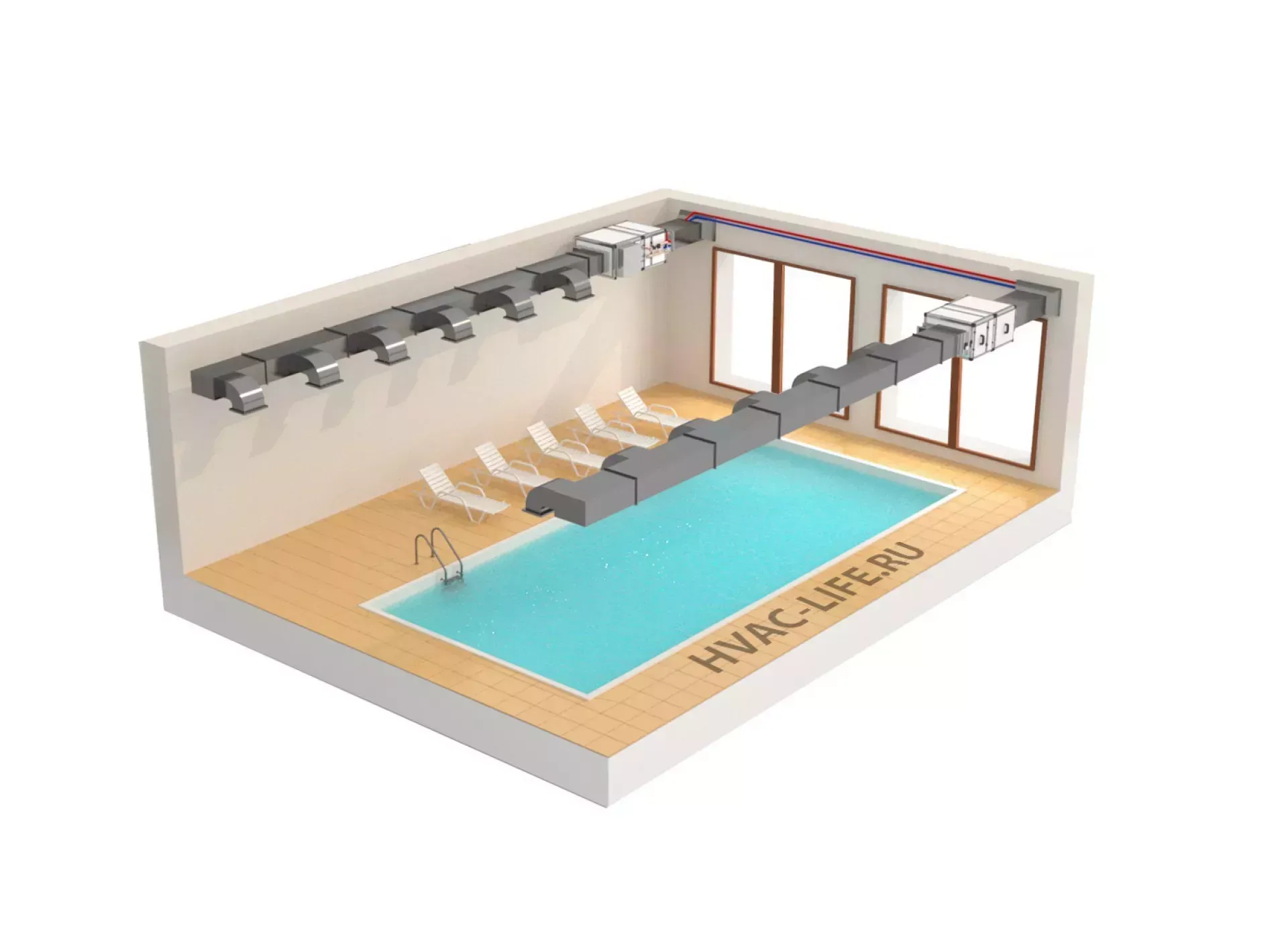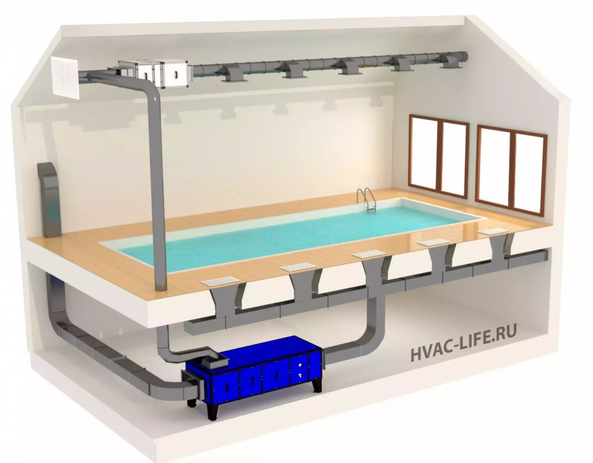 Сколько места занимает приточно-вытяжное оборудование в бассейне?